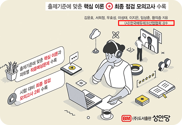 성안당의 필기 교재는 #이러닝 분야 NCS 표준 을 정립한 #한국에듀테크협회(구. 한국이러닝산업협회)에서 감수하였다 하여 철석같이 믿고 공부할 수 있었어요.